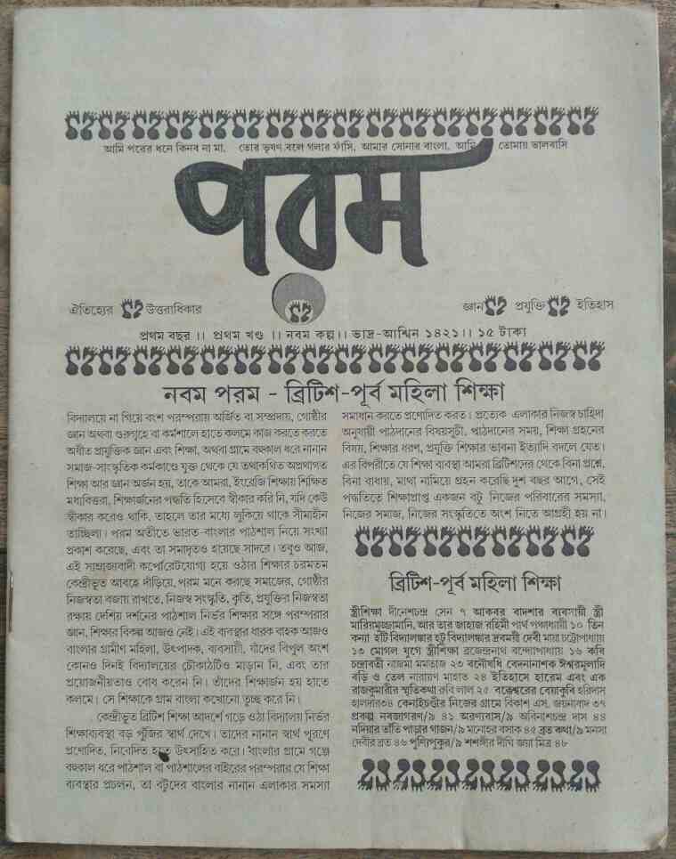 ব্রিটিশ-পূর্ব মহিলা শিক্ষা- পরম পত্রিকা