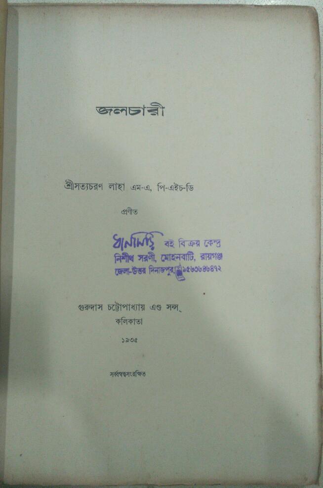 জলচারী -শ্রীসত্যচরণ লাহা