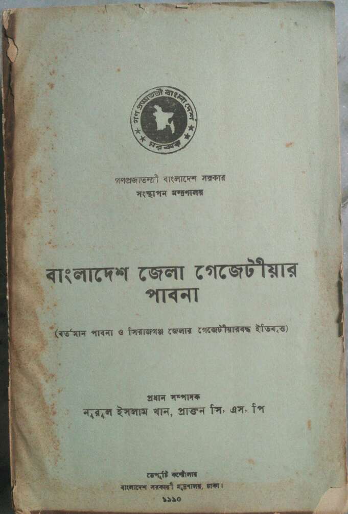 বাংলাদেশ জেলা গেজেটীয়ার পাবনা(বর্তমান পাবনা ও সিরাজগঞ্জ জেলার গেজেটীয়ারবদ্ধ ইতিবৃত্ত) -প্রধান সম্পাদক:নুরুল ইসলাম খান