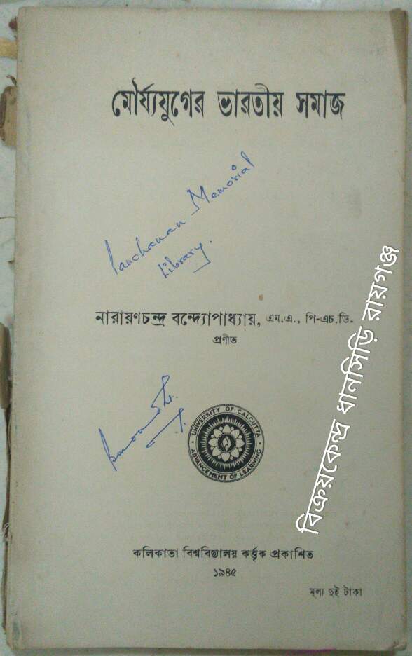 মৌর্যযুগের ভারতীয় সমাজ -নারায়নচন্দ্র বন্দোপাধ্যায়